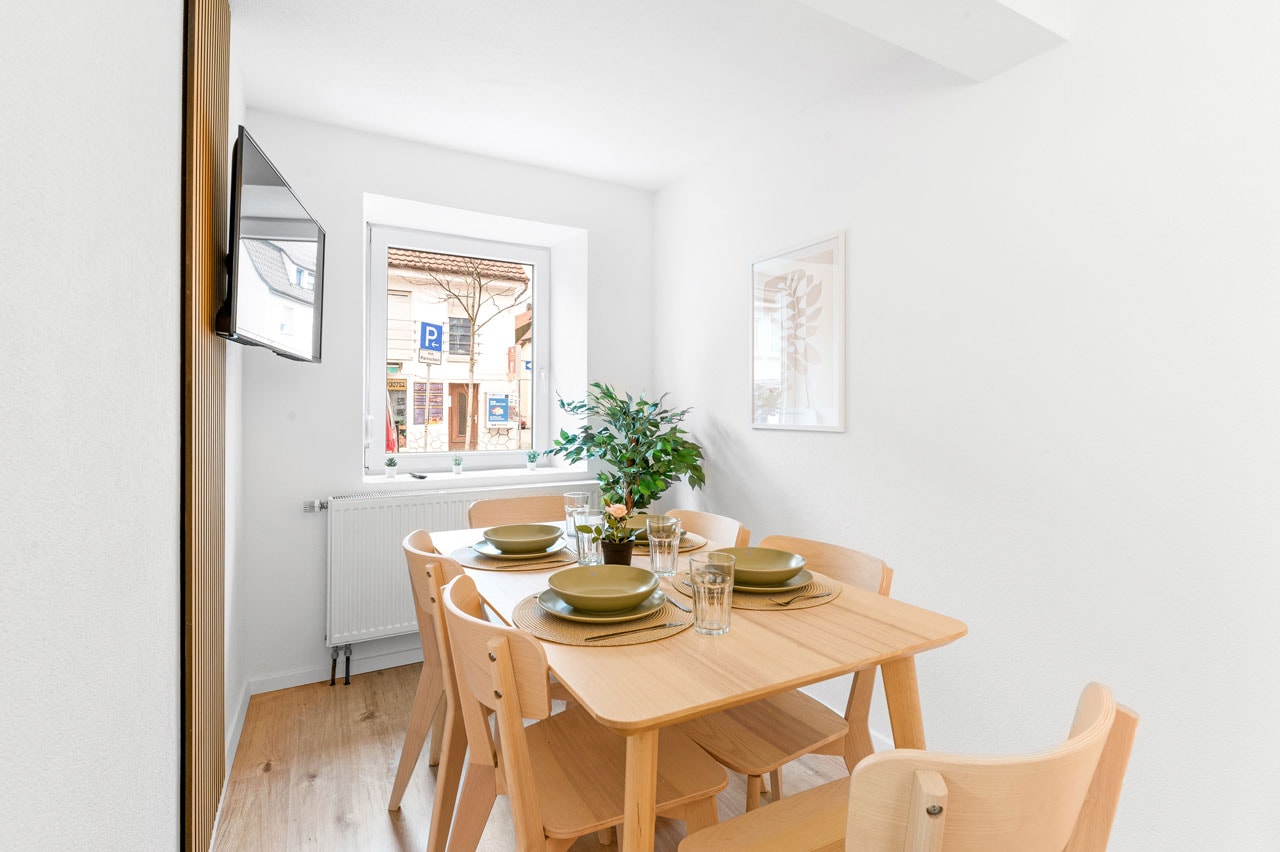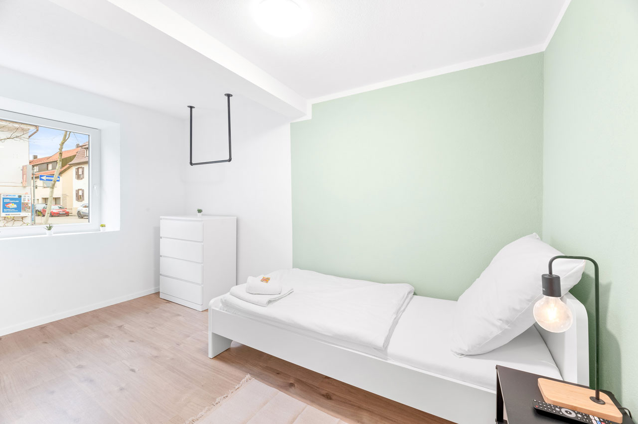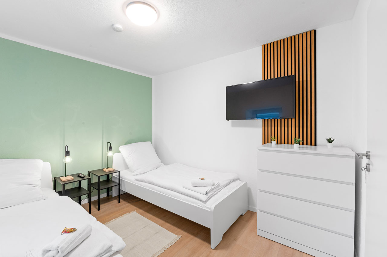Region: Stuttgart-Esslingen Nürtingen Apartment mit 3 Schlafzimmern BW12 6 Einzelbetten 1 Küche 1 Badezimmer Ø Balkon Ø Terrasse 70 Gesamtfläche (qm) Verfügbare Einheiten: 1 Ab 120 €/Nacht zur Buchung Alle unsere Apartments verfügen über den home2stay Standard Bequeme Betten – für einen erholsamen Schlaf Kühlschrank Highspeed-WLAN (kostenloses Internet) Grundausstattung an Toilettenpapier und Seife Waschmaschine/Trockner (wenn vorhanden in jeder Unterkunft oder zumindest zugänglich) Self Checkin 24/7 Parkmöglichkeit Bettwäsche und Handtücher werden kostenfrei gestellt Eigenes Badezimmer Smart-TV in jeder Unterkunft 1A Verkehrsanbindung Diese Apartments könnten Sie auch interessieren Alle anzeigen Ab 130 € 1x 6 1 1 80 Nürtingen Apartment mit 3 Schlafzimmern BW13 Region: Stuttgart-Esslingen Standort: Nürtingen Ab 100 € 1x 5 1 1 60 Nürtingen Apartment mit 2 Schlafzimmern BW13b Region: Stuttgart-Esslingen Standort: Nürtingen Eine unverbindliche Anfrage senden Vorname* Nachname* E-Mail Adresse* Wo suchen Sie? Entfernung zum Projekt Personenanzahl* Check-in* Check-out* Ihre Nachricht Senden