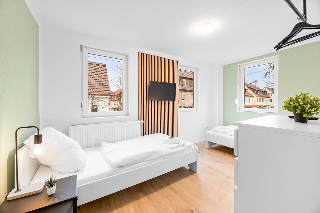 Region: Stuttgart-Esslingen Nürtingen Apartment mit 3 Schlafzimmern BW13 6 Einzelbetten 1 Küche 1 Badezimmer Ø Balkon Ø Terrasse 80 Gesamtfläche (qm) Verfügbare Einheiten: 1 Ab 130 €/Nacht zur Buchung Alle unsere Apartments verfügen über den home2stay Standard Bequeme Betten – für einen erholsamen Schlaf Kühlschrank Highspeed-WLAN (kostenloses Internet) Grundausstattung an Toilettenpapier und Seife Waschmaschine/Trockner (wenn vorhanden in jeder Unterkunft oder zumindest zugänglich) Self Checkin 24/7 Parkmöglichkeit Bettwäsche und Handtücher werden kostenfrei gestellt Eigenes Badezimmer Smart-TV in jeder Unterkunft 1A Verkehrsanbindung Diese Apartments könnten Sie auch interessieren Alle anzeigen Ab 120 € 1x 6 1 1 70 Nürtingen Apartment mit 3 Schlafzimmern BW12 Region: Stuttgart-Esslingen Standort: Nürtingen Ab 100 € 1x 5 1 1 60 Nürtingen Apartment mit 2 Schlafzimmern BW13b Region: Stuttgart-Esslingen Standort: Nürtingen Eine unverbindliche Anfrage senden Vorname* Nachname* E-Mail Adresse* Wo suchen Sie? Entfernung zum Projekt Personenanzahl* Check-in* Check-out* Ihre Nachricht Senden